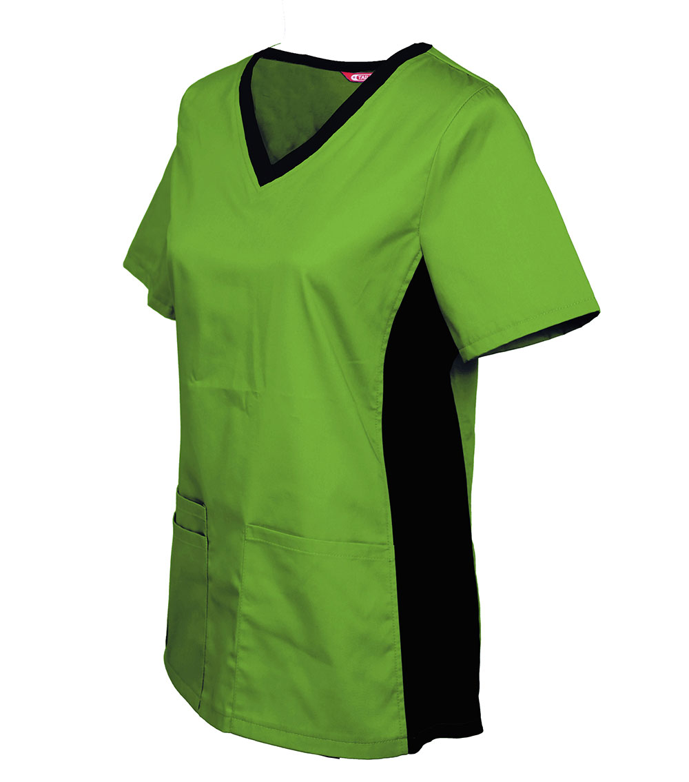 Damen Kasack mit V-Ausschnitt, Dehnbaren Seitenteilen und Drei Taschen