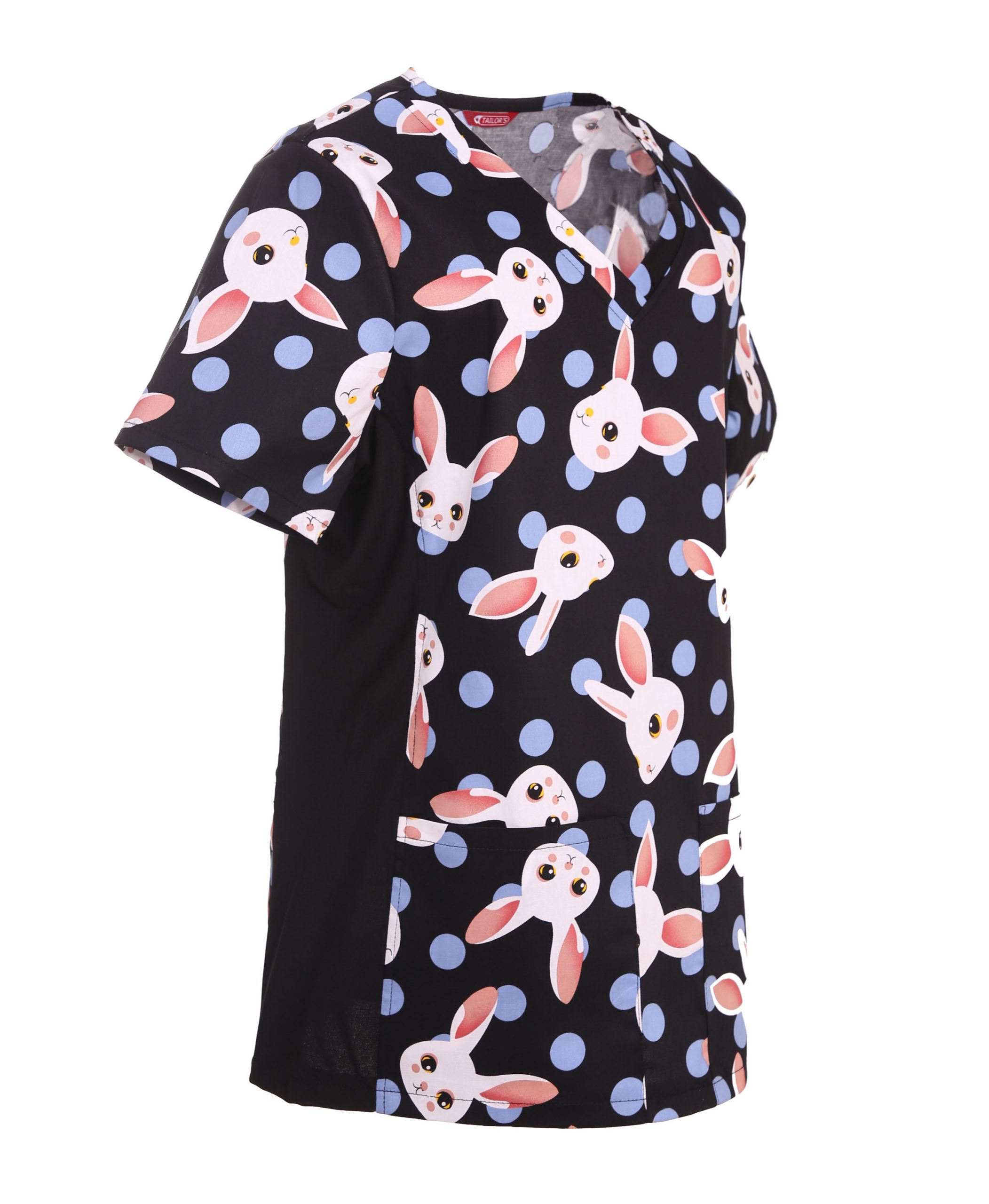 Esta blusa médica estampada está diseñada para brindar comodidad y movilidad durante largas jornadas laborales. Cuenta con cuello en V, paneles laterales elásticos y dos bolsillos funcionales para llevar lo esencial. Su tejido de 65 % poliéster y 35 % algodón es resistente, transpirable y fácil de cuidar: lavable y secable a máquina.