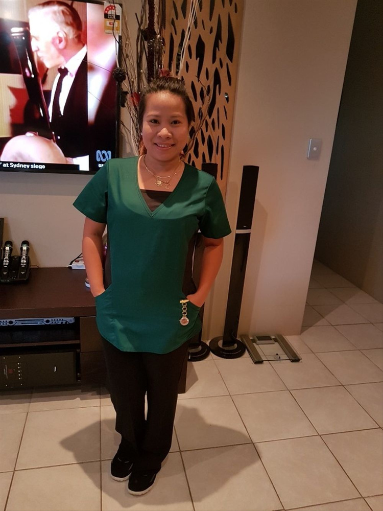 Lovely and comfortable, great design lots of pockets and places to put pens etc, quality fabric easy care quick dry. Very happy with the item I bought a large maybe could of gone up one size but fits so great! Thanks