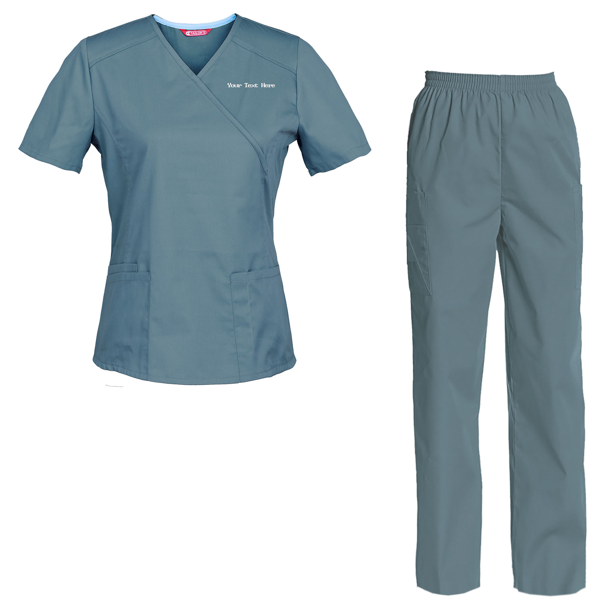 Women’s Embroidered Scrub Set/ Medical Scrub Set/ Nursing Uniforms V-Neck Top and pants