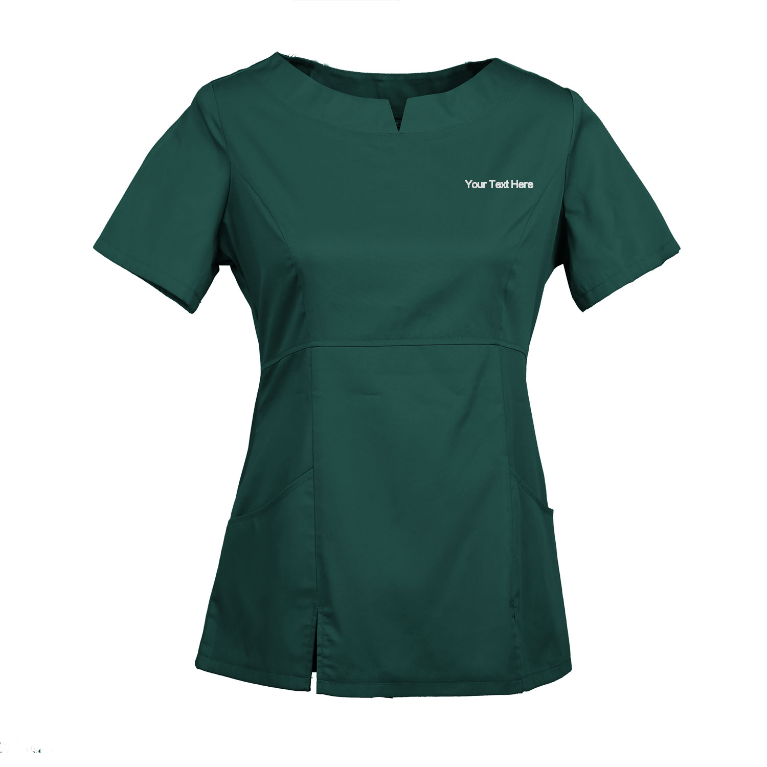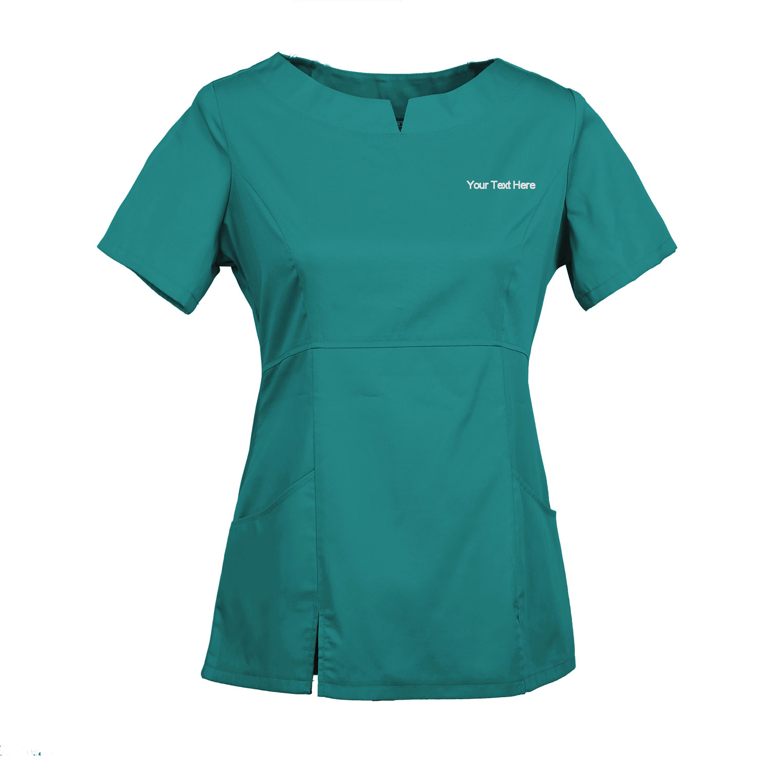 Personalize the scrub top with up to 3 lines of text above left chest