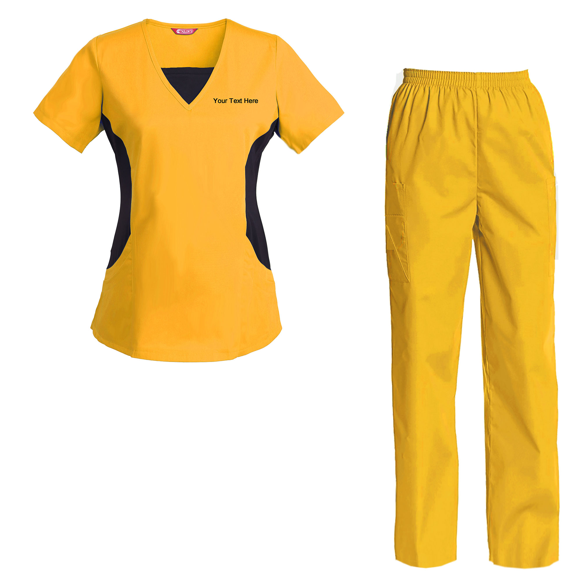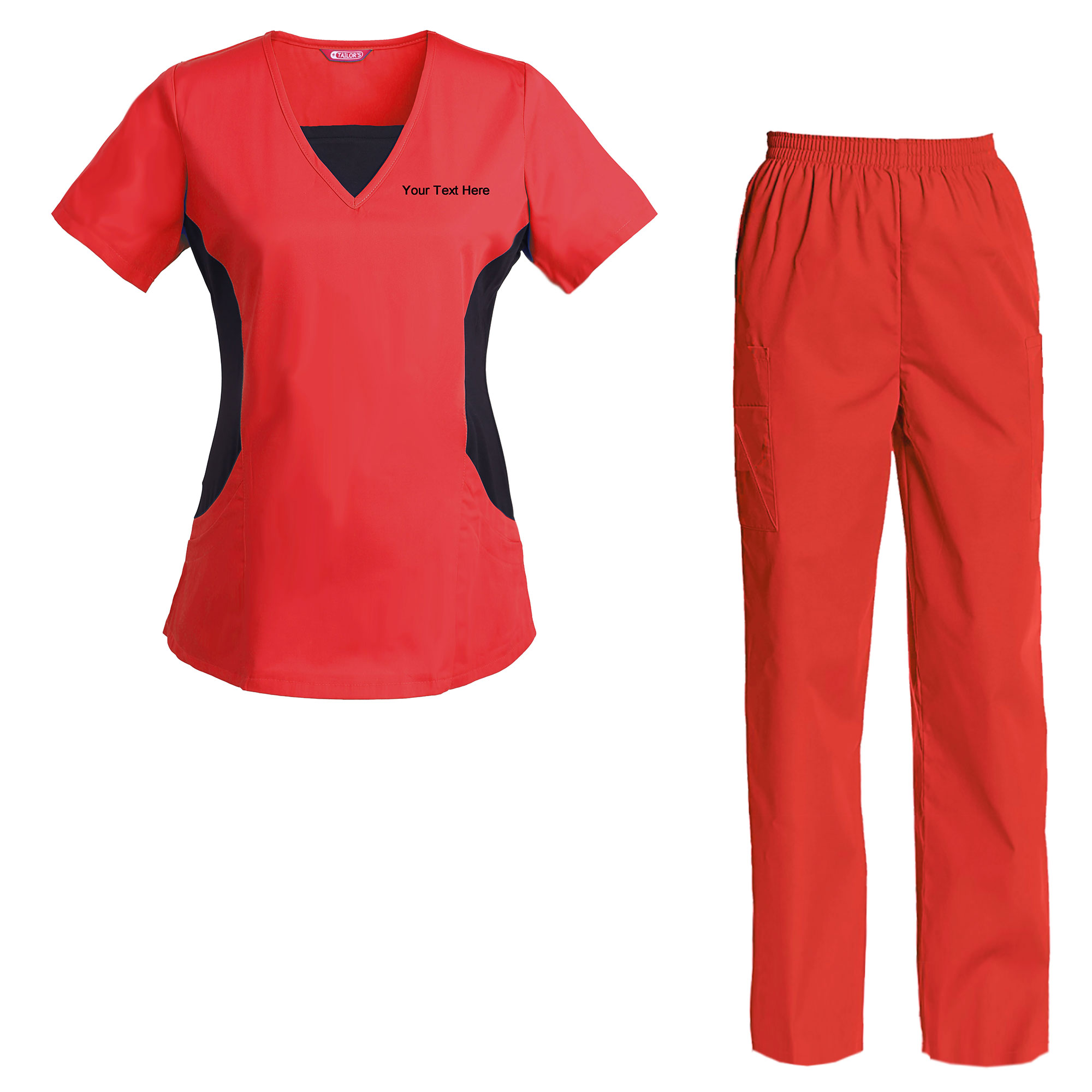 Women’s Embroidered Scrub Set Scrub Top and Pants Scrubs Set Personalized with your Text